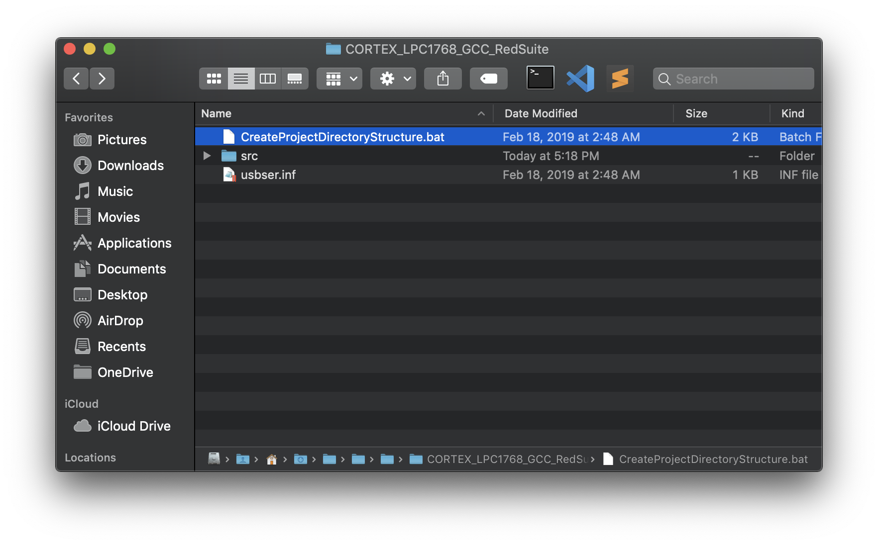 2. 다운로드 받은 폴더 경로에서 FreeRTOS/Demo/CORTEX_LPC1768_GCC_RedSuite로 이동해준 후 Windows 환경에서 CreateProjectDirectoryStructure.bat을 실행시켜주세요.