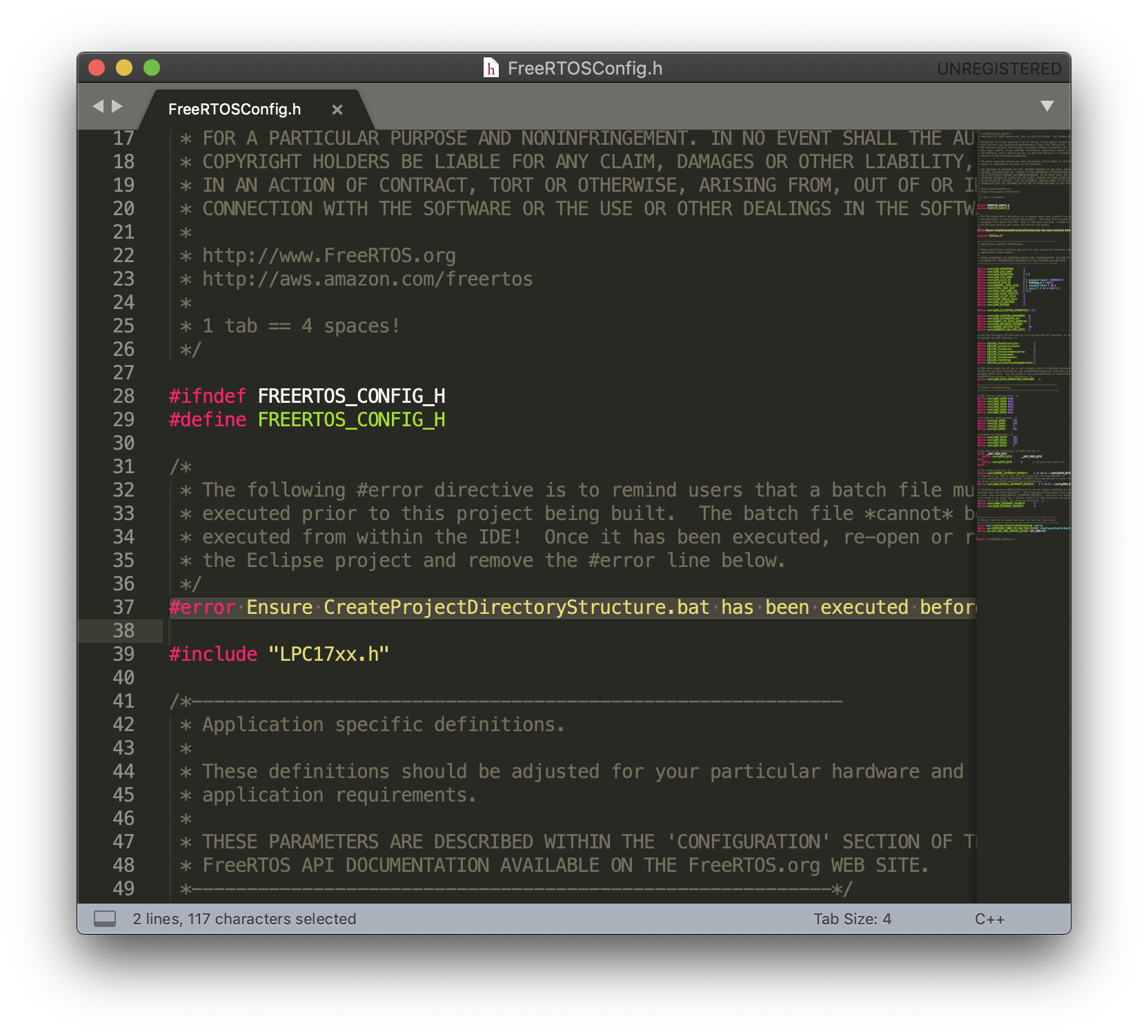3. src/FreeRTOSConfig.h에서 아래 부분에 해당하는 줄 (37번째 줄)을 제거해주세요.