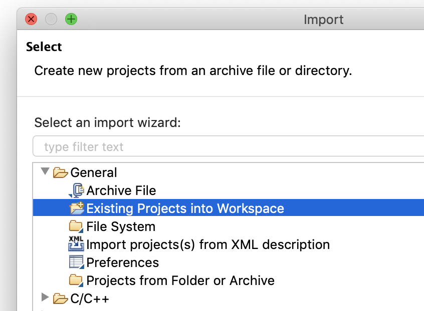 4. IDE(MCUXpressoIDE)에서 File-Import-Existing Projects into Workspace 를 선택한 후 Next를 눌러줍니다.
